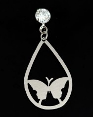 Brinco de Inox Corte a Laser 40mm Borboleta com Base Zircônia